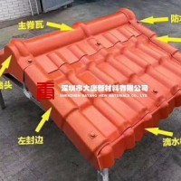 树脂瓦有哪些配件?【大唐新材】树脂瓦配件包括:正脊瓦、斜脊瓦、三通、四通、斜脊瓦末端、滴水板、正脊瓦端头、仿古滴水板、左右封檐、90度阳角封檐板、90度山墙乏水板、135度阴角倒流板、120度立墙乏水板、90度的阴角倒流板、防水帽、飞檐(翘角)、葫芦(宝顶)等。