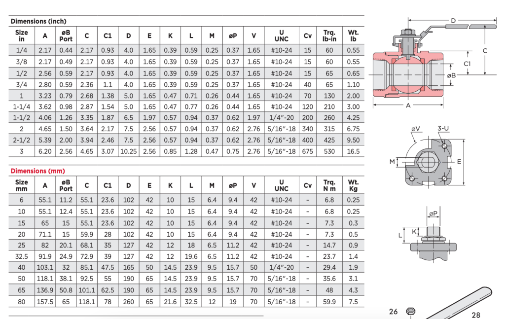 | 尺寸范围 1/4 -3“ (8 – 80mm) | 阀体材料 S70: 316 不锈钢 |S90: 木板碳钢 |