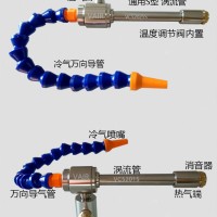 输入一定压力的压缩空,通过涡流管转换,一端产生冷空(在干燥空的前提下温度可达-40°C),一端产生热空(温度可达110°C)。热端装有一个小型的可调节阀门,有手动调节旋钮,这样可以手动调节冷的温度和出量。涡流管可以按不同的流量和温度范围二种模式进行选择。