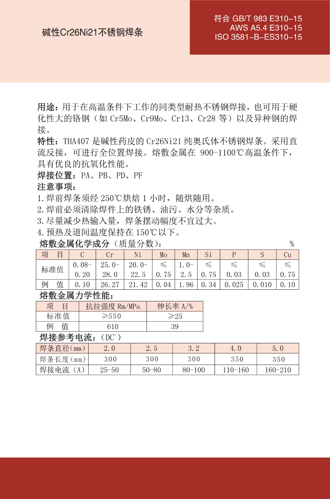 THA407不锈钢焊条