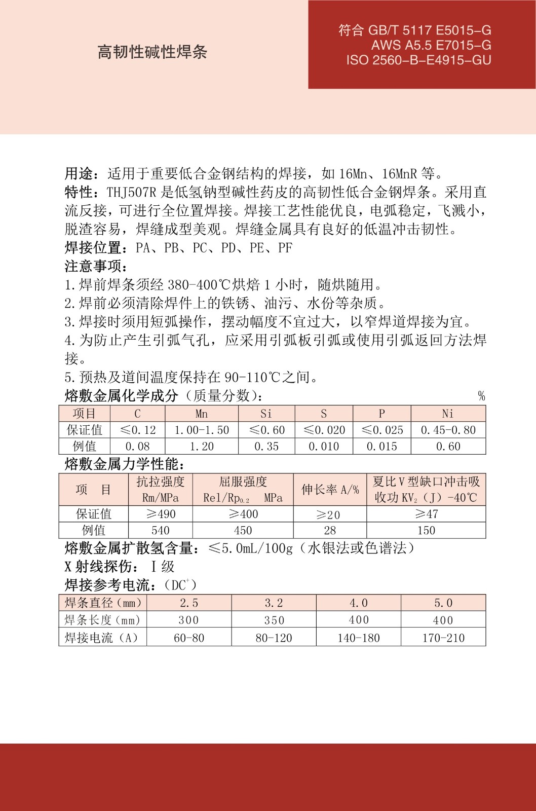 THJ507R低合金钢焊条