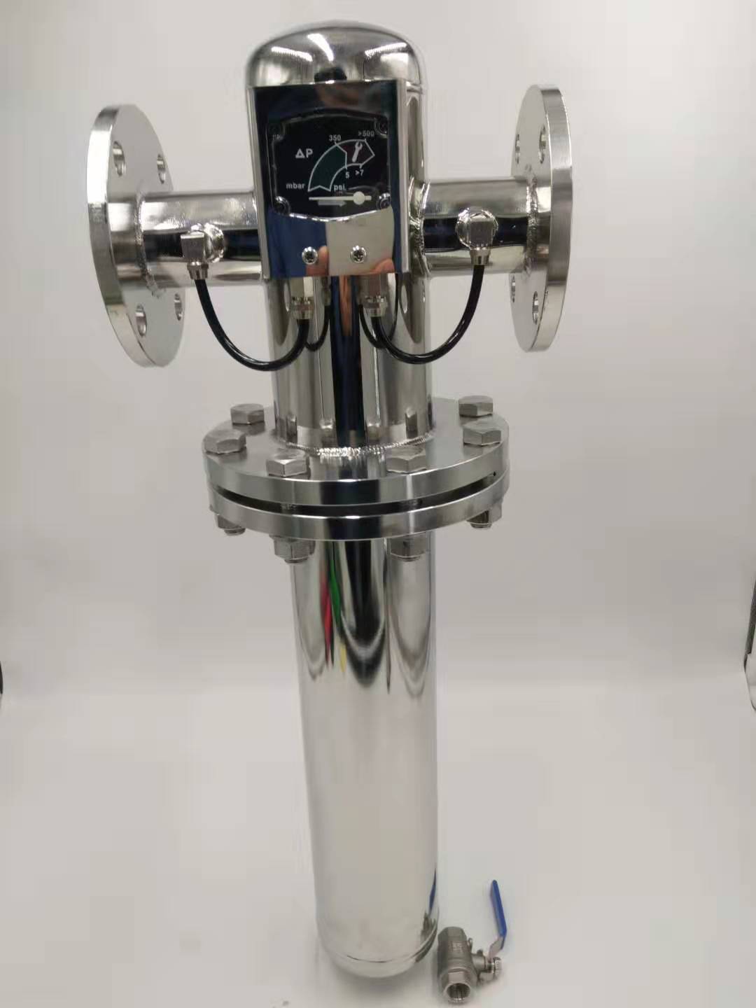 过滤器具有结构先进,阻力小,排污方便等特点。适用介质可为水、油、。可按客户要求制作滤网,其外形基本相同,内部件全部采用不锈钢,坚固耐用。Y型过滤器体积小、滤眼细、阻力小、效果高、安装检修方便、成本低、排污时间短,对一般小型号的,只需5-10分钟。Y型过滤器一般通水网为18-30目/c㎡,通网为40-100目/ c㎡,通油网100-480目/ c㎡。多联过滤器(六联不锈钢316L过滤器)