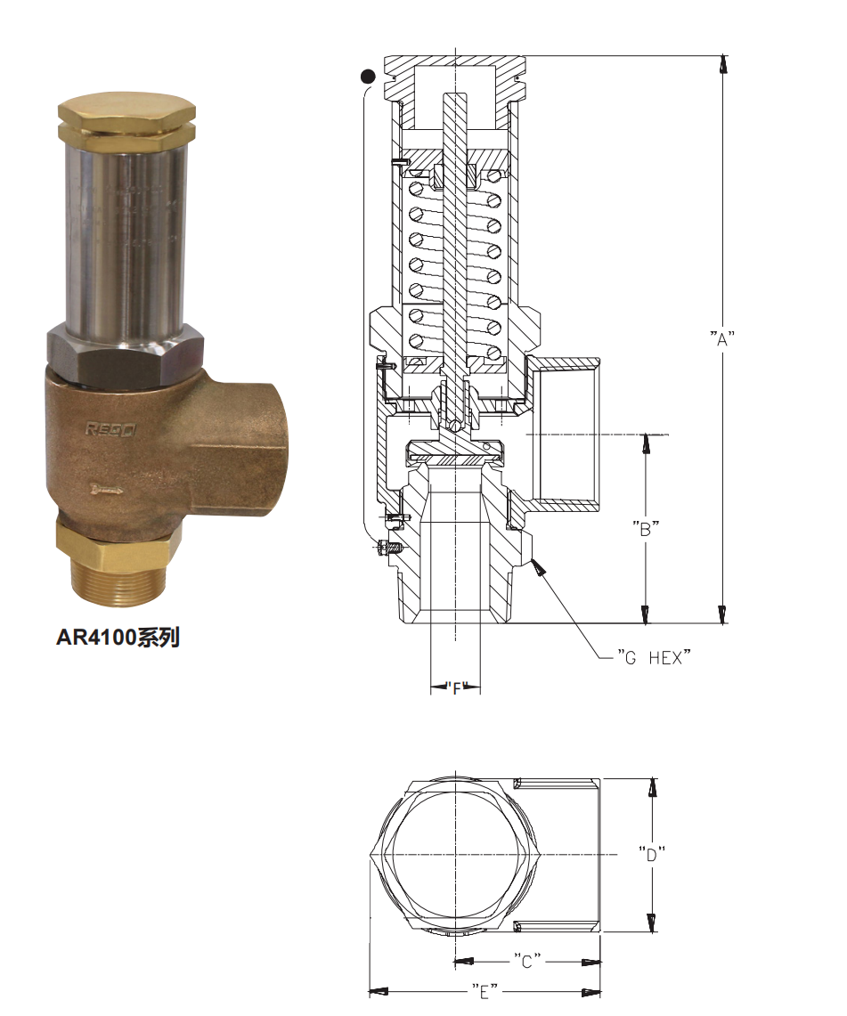 订购信息 部件号 入口MNPT* 英寸 出口FNPT 英寸 A 英寸 (毫米) B 英寸 (毫米) C 英寸 (毫米) D 英寸 (毫米) E 英寸 (毫米) F(喉径) 英寸 (毫米) 重量 磅 (千克)