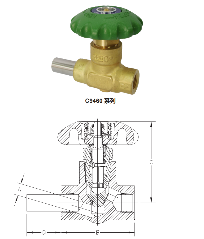 REGO低温截止阀 C9450 系列 和 C9460 系列-短杆