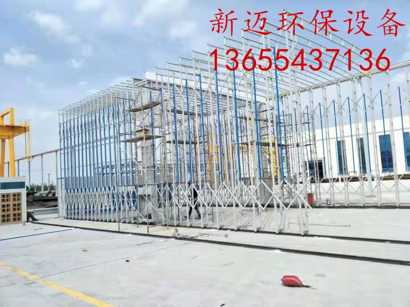 一、移动伸缩房有多种叫法,比如移动喷漆房、伸缩喷漆房、移动伸缩喷漆房、折叠喷漆房、全自动喷漆房、移动打磨房等名称,新迈环保可以根据客户提供的长宽高尺寸,来设计制造。伸缩房有以下部分组成:移动伸缩房体、轨道、照明系统、伸缩警示系统、电动系统等部件。伸缩房整体为框架传动构造,每组框架之间都有阻燃、抗拉伸、高强度的PVC布衔接而成的,装置便当快捷,外型美观。