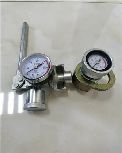 增压式单体支柱测力计是一种检测单体柱初撑力(工作阻力)的仪器。它具有体积小,精度高等优点,适合于普采工作面批量装备日常携带检测。增压式单体支柱测力计突出的优点是:1.利用向支柱内注液的方式测定支柱内液体的压力,有 效的保证了支护的安 全;2.能自动排气,手把摇动一次即可充液测压成功,操作非常方便;3.结构简单、密封件少、不怕锈蚀、性能可靠、寿命长;4.体积小、重量轻、携带方便;5.可连续向支柱内充液,使支柱增压。