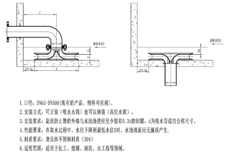 2.有 效消 除抽吸水过程中水箱(池)产生的旋流。