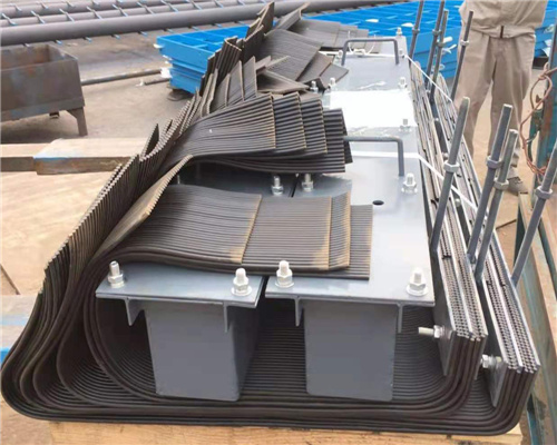 导料槽防尘帘是一种导料槽防尘装置,属于防尘技术领域。挡尘帘采用多条并列排布的橡胶条,通过顶部的固定支架,固定为一个整体,一般为多层结构。固定在导料槽上方,挡尘帘的下方自然垂落在导料槽内,形成多级除尘,避免了传统的橡胶条挡尘效果不佳的问题。导料槽防尘帘也可以采用聚氨酯材质,耐磨性更好,延长使用寿命,降低成产成本。
