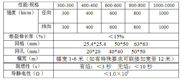 二、煤矿井下用聚酯纤维增强塑料网假顶参数表: