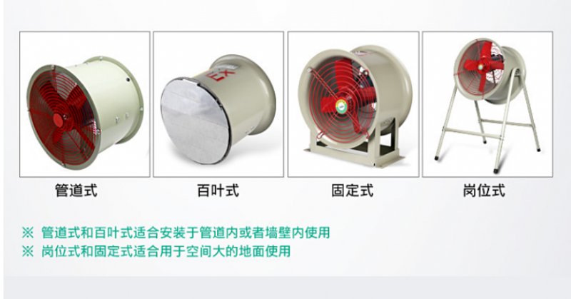 宇成BT35-11防爆轴流风机安装方式有管道式,百叶式,固定式,岗位式,可根据需要选购。