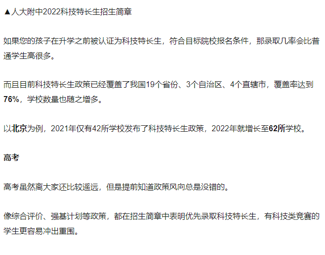 初升高就更不用说了,大部分学校都会在官网公布科技特长生招生简章,