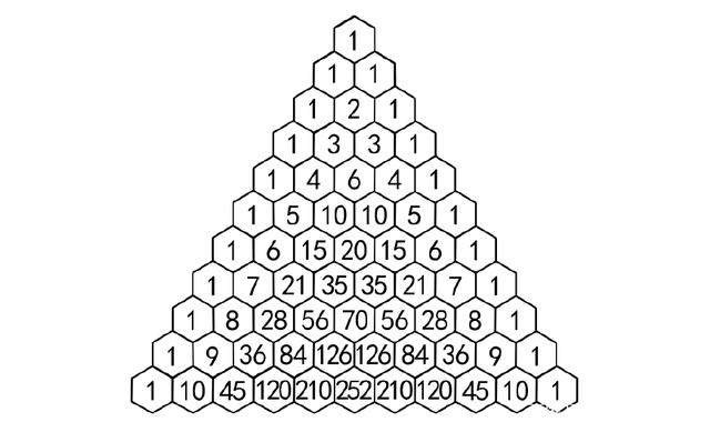 杨辉三角,是一种像三角形一样的几何排列。在中国南宋数学家杨辉1261年所著的《详解九章算法》一书中出现。在欧洲,帕斯卡(1623----1662)在1654年发现这一规律,所以这个表又叫做帕斯卡三角形。帕斯卡的发现比杨辉要迟393年,比贾宪迟600年。