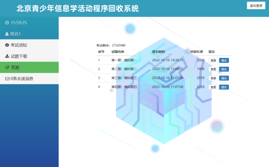 2024年,北京和四川等省份采用程序回收系统手机选手题目源代码。以北京为例,是在浏览器中打开一个内网网址,然后把代码直接复制粘贴到网址里面,再点击底部的“提交”按钮即可。这种粘贴代码的网站叫做代码回收系统。