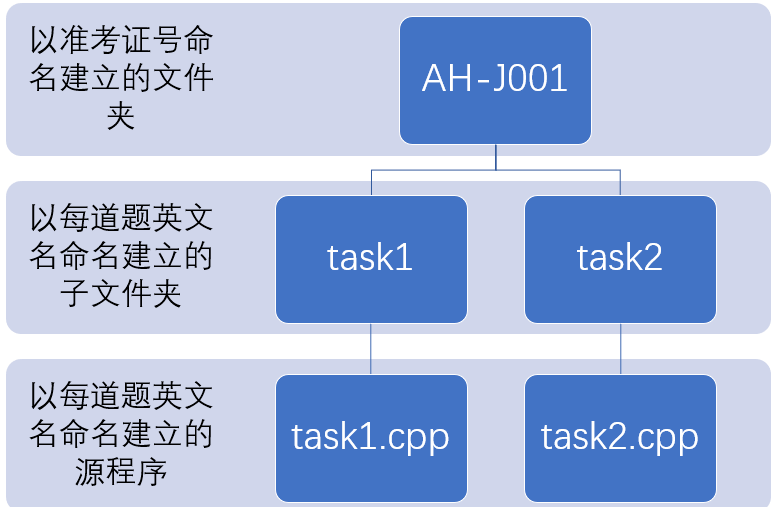 (1)先建立以选手自己的准考证号命名的总文件夹;