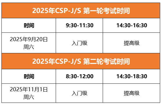 CSP-J/S 2025 第二轮考试是将统一在11月1日完成,交卷后由各地组织者收集好考生的程序,最后交给 CCF 统一判分。简单来说就是考生把源程序以指定方式提交,CCF 统一运行程序,并把运行结果和正确结果进行比较,根据数据点得分,累计之和为最终成绩。