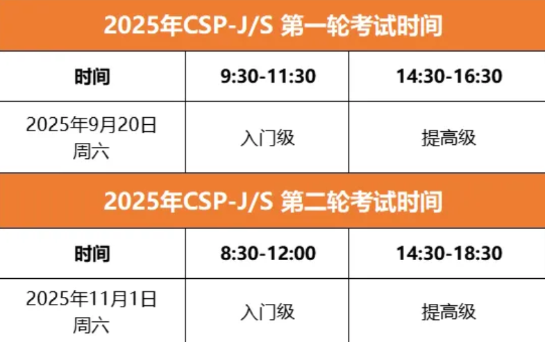敲重点!2025年CSP-J/S准考证下载倒计时!2025年CSP-J/S第一轮认证也将于9月20日(本周六)举行!