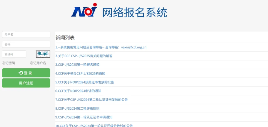 登录NOI网络报名系统(网址:https://cspsjtest.noi.cn/),输入孩子报名时的用户名和密码,点击“登录”。