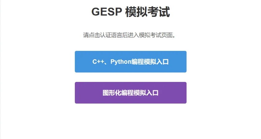 2.根据孩子报考的语言选择入口:C++/Python 点“编程模拟入口”,图形化编程点“图形化模拟入口”