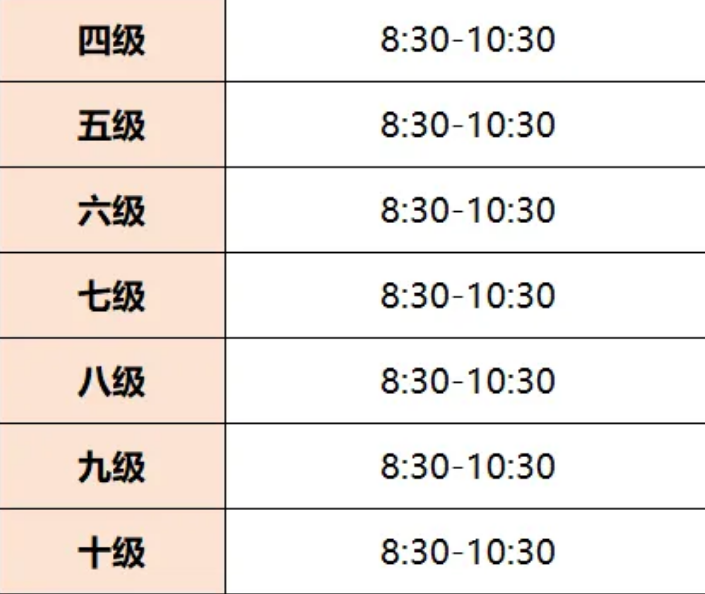 不同科目、级别考试时间不一样,咱们按日期和科目整理成表格,家长直接找孩子报考的类别就行,不用再翻来翻去。