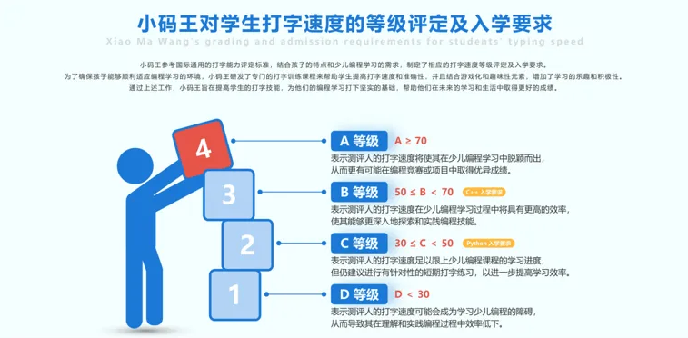 因此小码王专门研发了打字训练课程,帮助学生提升打字速度,这在日常练习和比赛现场都极为关键。