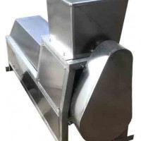 本实用新型全自动冬瓜去瓤机有切块装置、粗去瓤装置、精去瓤装置组成。切块装置将完整的冬瓜切分为体积较小的块状,并使瓜瓤暴露。粗去瓤装置和精去瓤装置均包括可旋转的搅拌叶片和设有漏料孔的壳体,搅拌叶片转动带动块状的冬瓜 和瓜瓤转动,转动过程中瓜瓤从漏料孔当中漏出,使瓜瓤和冬瓜分离。利用本实用新型全自动冬瓜去瓤机,能够取代传统的