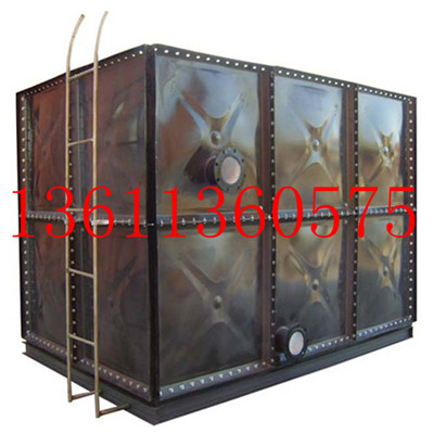 本公司的组合式搪瓷钢板水箱的板块均由搪瓷钢板拼装而成,下面用槽钢底座,内用拉筋加固,板块之间夹上三元乙丙橡胶条密封,用螺栓紧固。其贮水容积从1立方米到2000立方米,高度可达6米。可按用户要求的尺寸生产组合。该水箱内贮存的水质经北京市卫生防疫站鉴定,符合国家《生活饮用水卫生标准》(GB5479—85)的要求
