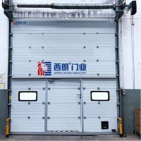 一是在企业使用,滑升门可以开小门、视窗,不仅方便日常工作观察与人员通行,而且滑升门的小门开关是机械式的,即不带电的情况,供员工出入。消防验收要求,厂房车间需要消防逃生门,也就是在大门外另开一个平开小门,与滑升门的门中门一样。