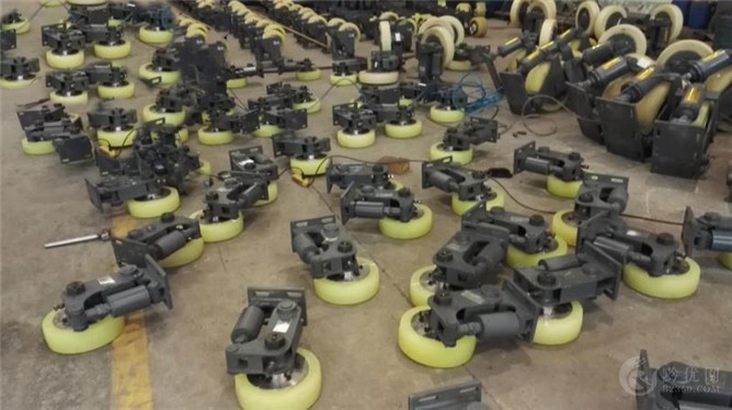 3、缓冲器复位压力小,可有效地避免滚轮与罐道产生异常碰撞。通过杠杆传递到减震筒上,同时起到导向、缓冲与稳定作用。