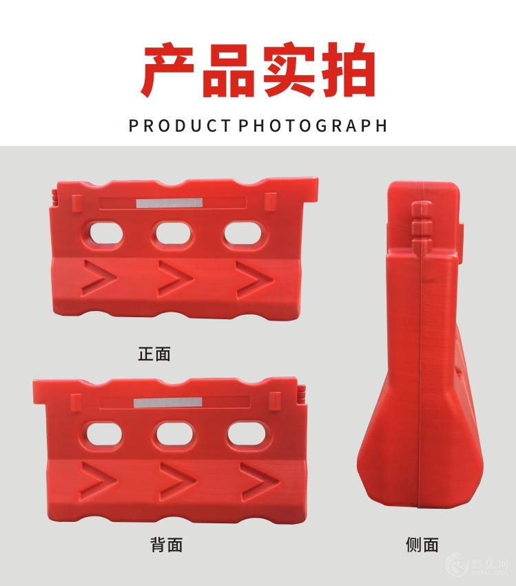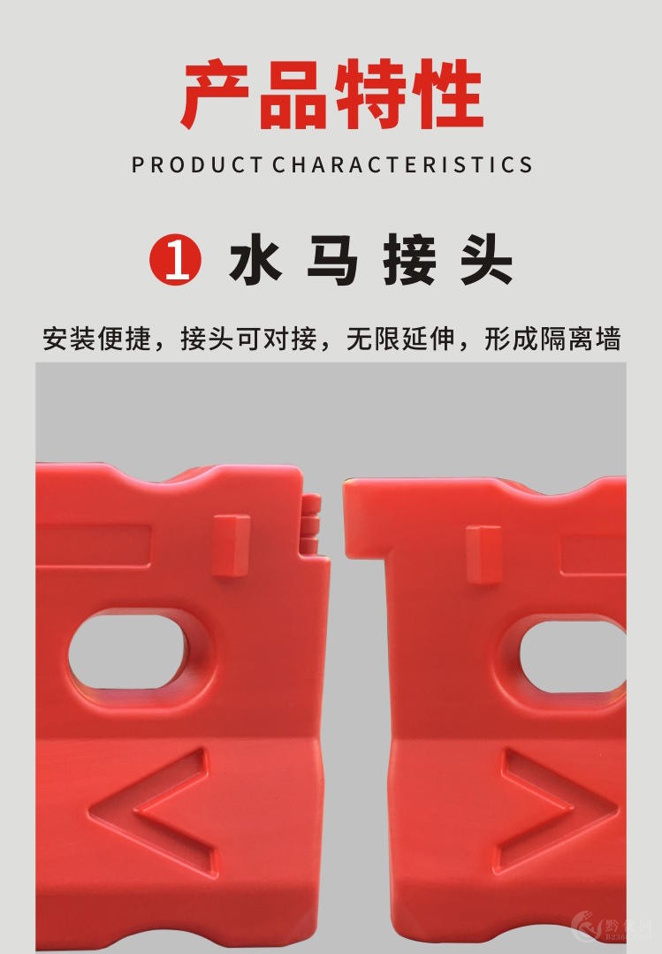 水马是一种用于分割路面或形成阻挡的塑制壳体障碍物,通常是上小*不可充水的木质或铁质可移动障碍物称为拒马部分,水马还有横向的通孔以便通过杆件连接以形成更长的阻挡链或挡墙。一般用于道路交通设施,在高速路、城市道路、及天桥街道路口常见。