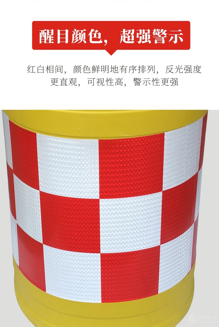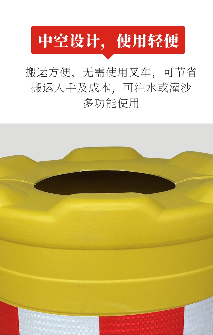 防撞桶主要设置在公路及城市道路上容易发生车车与路中固定设施发生碰撞的部位,如:路的转弯处,路中岗亭、收费站及高架路的进出口,停车场、小区、花园、加油站等等,起到隔离作用,防撞桶是用高弹性、高强度的改性塑料制成,当车车与该设备碰撞时,能有效地减小冲击力,因此,能显著地降低车与人的损伤。 其表面贴有的反光膜,可以根据需要贴上指示标签。