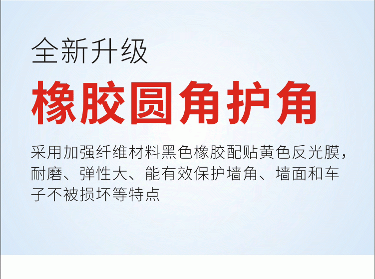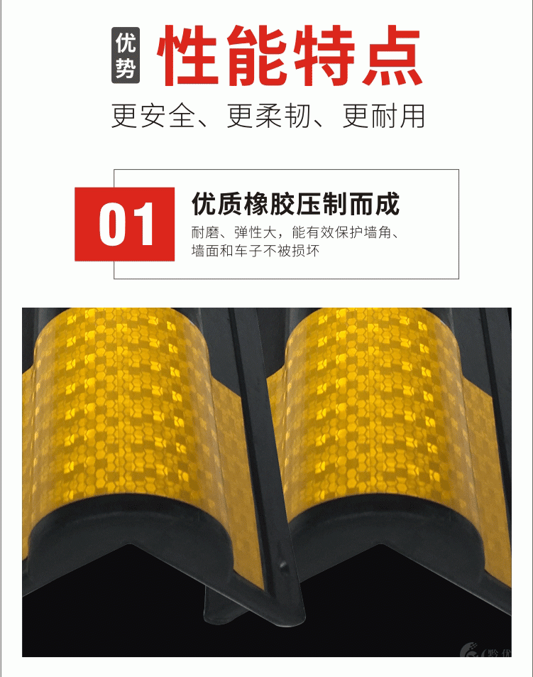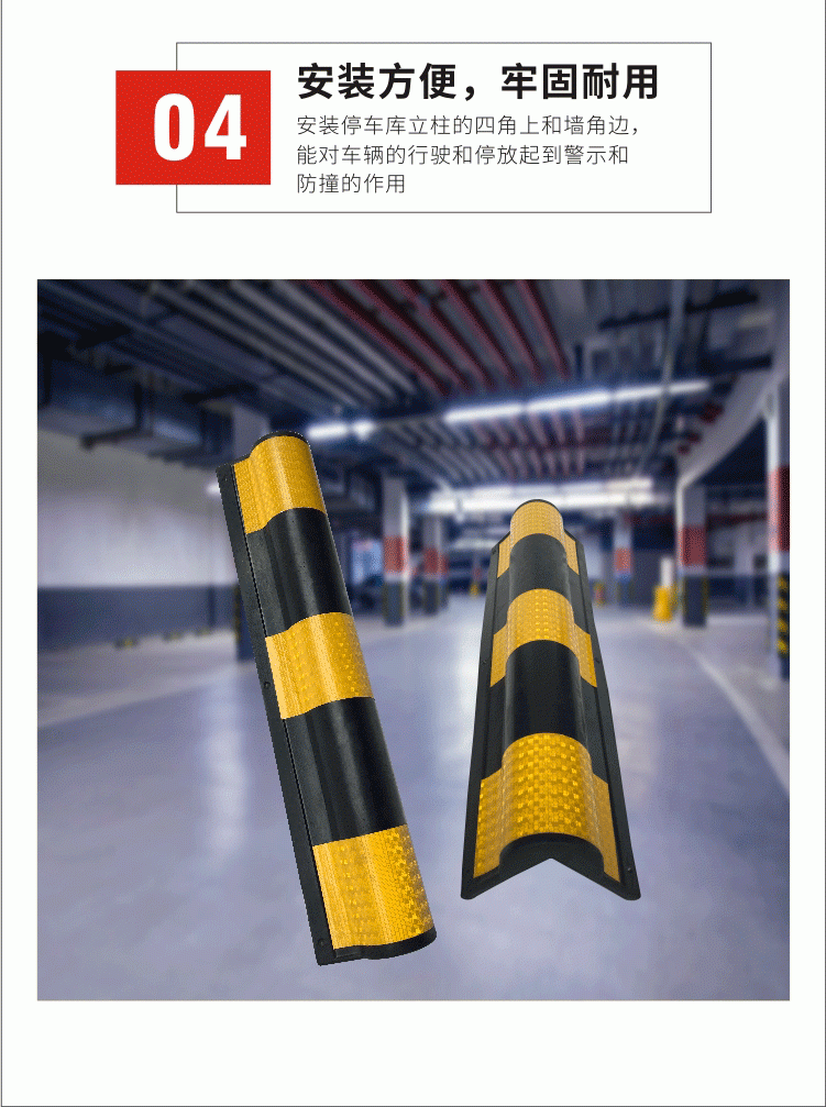 护墙角保护器强烈的反光作用,可*示司机夜间行车安全。在有限的车位面积上,车车即使撞击到墙角,因产品本生是软性橡胶为主体材料,也不会给车子造成很大的伤害,能有效的起到保护车子的作用。适合在停车场,居住区,收费通道处使用、用于地下停车库、工厂车间、装卸货物平台、家庭车库门两侧等等。