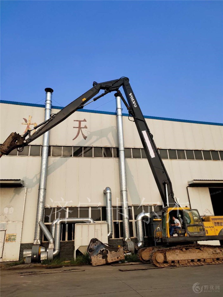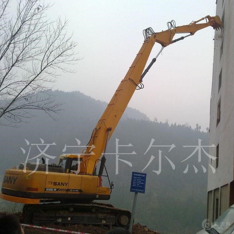 挖掘机三节臂分为和四段式拆楼臂,主要适用于高层建筑拆迁。挖掘机三节臂装在挖机上配用液压剪、破碎锤、挖斗等高效作业。拆楼臂挖机改装分为三个部分,1、液压油路改装,2、拆楼臂改装,3、附具改装。