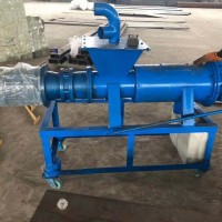 干湿分离机可广泛做为鸡、牛、马及各类集约化养殖场及纸浆通过液下泵把需要处理的原料抽到螺旋式干湿分离机设备主体内,设备主体上的电机和减速机开始运行,通过蛟龙把原料推向出料口方向,这样不断提高出料口方向对原料的压力,迫使原料中的水分因为压力过大从原料中脱离出来,脱离出来的水通过出水口排出去,因为干湿分离机是连续不断的,挤压出来的水不断通过出水口排除,脱完水的原料不断向出料口加压,压力达到时把出料口顶开,脱完水的原料就从出料口脱出,因为设备是连续不断运行这样就行程一个循环,原料的干湿度利用杠杆原理通过配重锤来调节压力,达到控制物料干湿度的大小。