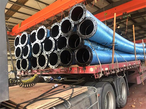 大口径胶管用以输送气体、液体、浆状或粒状物料的一类管状橡胶制品。大口径胶管由内外胶层和骨架层组成,骨架层的材料可用棉纤维、各种合成纤维、碳纤维或石棉、钢丝等。一般胶管的内外胶层材料采用天然橡胶、丁苯橡胶或顺丁橡胶;耐油胶管采用氯丁橡胶、SBR橡胶;耐酸碱,耐高温胶管采用乙丙橡胶、氟橡胶或硅橡胶等。大口径胶管的内胶层直接承受输送介质的磨损、侵蚀,且防止其泄漏;钢丝骨架排吸胶管外胶层保护骨架层不受外界的损伤和侵蚀;骨架层是胶管的承压层,赋予管体强度和刚度。大口径胶管的工作压力取决于骨架层的材料和结构。大口径胶管按其骨架层材料和结构可分为全胶胶管(无织物材料)、夹布胶管(骨架层为布层,)、吸引胶管(布层外还有一层金属螺旋线,)、编织胶管(骨架层为编织的钢丝或织物,)、缠绕胶管(骨架层为钢丝或线绳缠绕层,)、针织胶管(骨架层为针织物,)、短纤维胶管(短纤维与橡胶共混压而成)。其中吸引胶管在负压下工作,钢丝编织胶管或缠绕胶管能承受80~600MPa乃至更高的压力。吸排泥浆大口径胶管适用于水、压缩空气和非腐蚀性液体的输送,广泛应用于工业、建筑业、农业等领域;工作压力:10-15bar,18bar,20bar和25bar;温度范围在:-20℃--45℃环境下使用;内胶:光滑,SBR合成橡胶;外胶:光滑(表面布纹),抗老化、耐臭氧的EPDM合成橡胶。