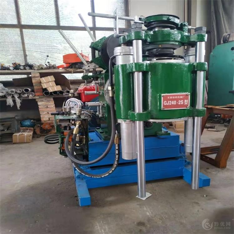 文登200型钻机前后移动,通过把自带泵改为减速机传动泥浆泵改进设计而成的,是一种液压给进的高转速轻便钻机。