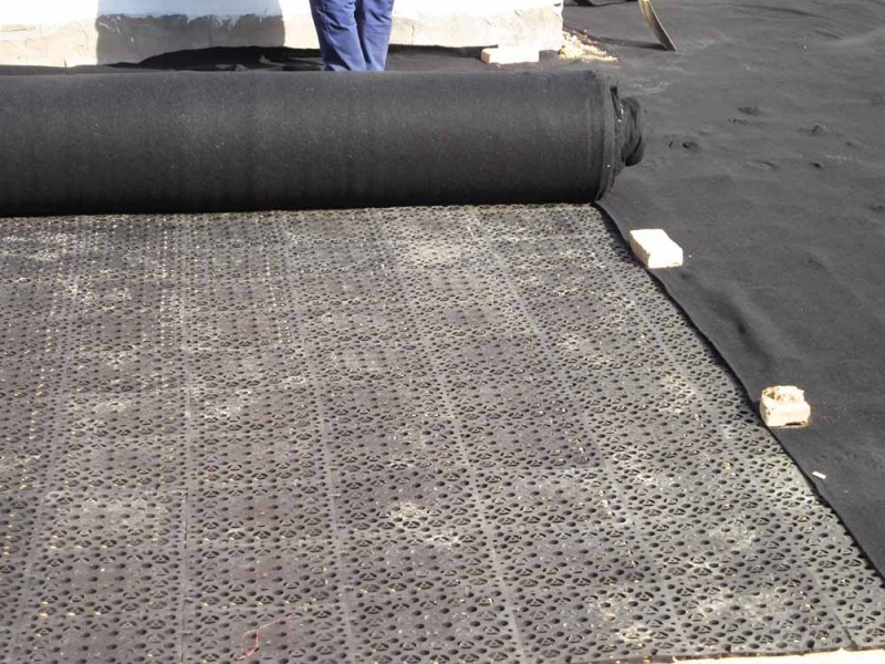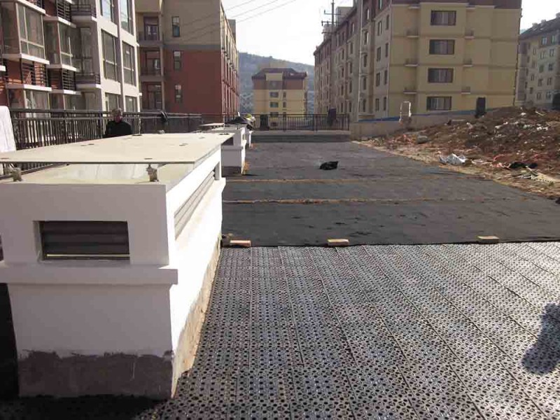1、传统的排水方式使用砖石瓦块作为导滤层,使用较多的鹅卵石或碎石作为滤水层,将水排出。而现在用排水板取代15cm-20cm鹅卵石滤水层来排水。施工时可直接平铺于防水层之上,代替传统屋面中防水层之上7cm厚的钢筋混凝土刚性保护层,从而使保护层由原来的刚性变为柔性,使施工更加简便、快捷,而且从根本上减少了刚性保护层施工过程中对已完成的防水层的破坏,从整个工程角度来看,排水板施工速度快无需养护回填土随后跟进,大大缩短了工期,节省人力、财力、物力。