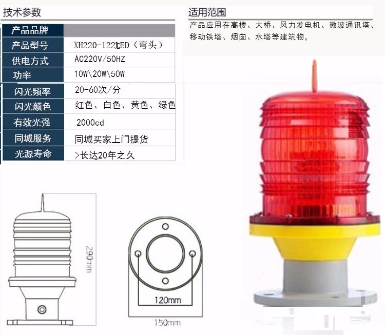 3、该灯广泛用于城市高层建筑、烟囱、通讯铁塔及机场周围建筑设施等场所。