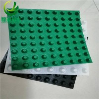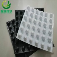 排水板是由聚乙烯为原料的塑胶底板经过冲压机冲压制成的具有圆锥突台凸点的防水板,公司经过不断的创新研发,原料得到巨大提升,使抗压强度和整体平整度得到大幅度的提升;经公司不断研究,产品幅宽可做到3米,长度可达15米,凸高可做0.8-6,特殊规格型号公司支持定制。