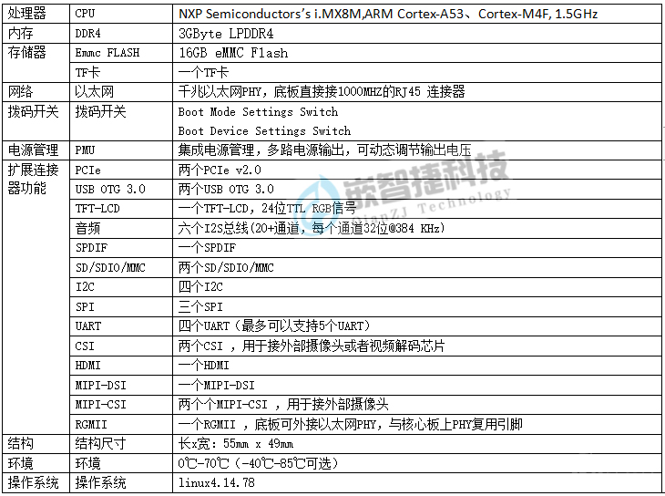 I.MX8M嵌入式主板 定制开发的产品参数: