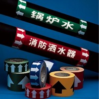 流向箭头标贴与自粘式管道标识配合使用,以清楚标出管道内容及流向,同时提供360°可视性及清楚的区别色。各种颜色,各种尺寸,满足您的不同需求