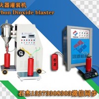 所述充装头包括固定板、压缩弹簧和马鞍形把手卡头,所述固定板上设置有向下延伸的导向柱,所述导向柱从上到下依次穿过压缩弹簧和马鞍形把手卡头的顶板,并与马鞍形把手卡头的顶板下方的压紧螺栓相连接,所述马鞍形把手卡头1的顶板后端连接有充装支架,所述充装支架上设有充装气缸,所述充装气缸1的活塞杆上设有与充装装置相连的充装接头,所述马鞍形把手卡头的侧板上设置有与充装接头相配合的把手压力表卡接槽,且马鞍形把手卡头的侧板上对应设置有启闭气缸和滑轨,所述滑轨上设有滑块1,所述滑块连接在启闭气缸的活塞杆上,且滑块与灭火器的把手相对应的一侧设有把手压柄。通过设置压缩弹簧,有利于保护马鞍形把手卡头,防止马鞍形把手卡头与灭火器瓶身的刚性碰撞,所述启闭气缸用于充装时通过滑块驱动把手压柄压下灭火器9的把手,以打开灭火器9的阀门,所述充装气缸用于驱动充装接头连接到灭火器的充装口并完成充装操作。
