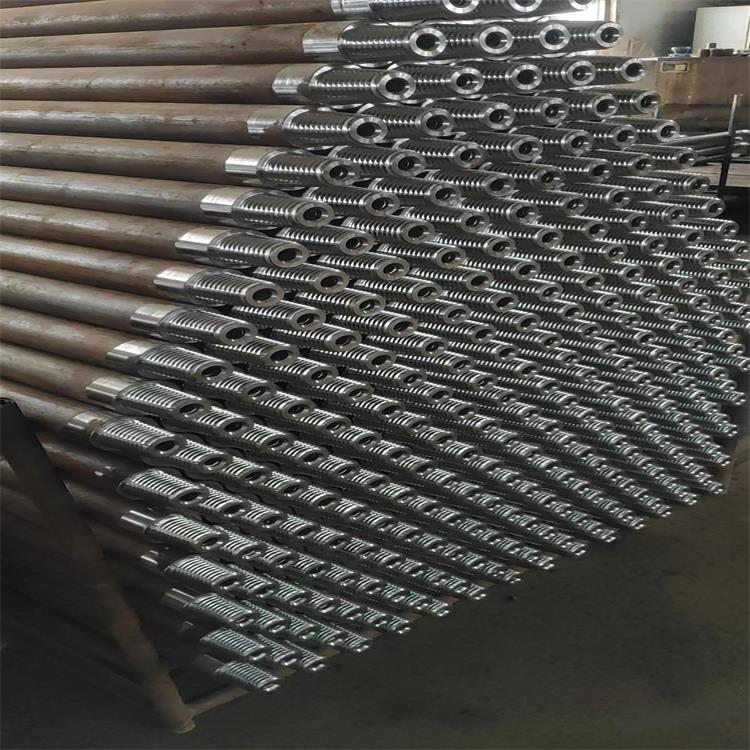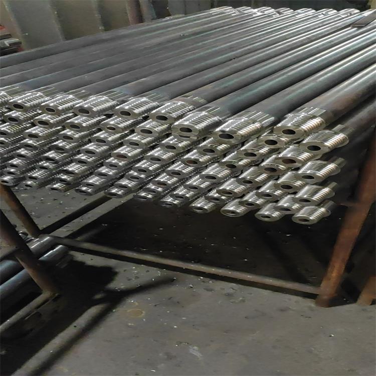 潜孔钻杆(外平钻杆)主要应用于凿岩破碎、锚固钻孔,地热空调孔、水井钻孔等。管体均采用大型钢铁企业生产的材料,管体两端采用了内加厚工艺,摩擦焊接后进行了回火处理,钻杆接头粗加工后调质热处理,精加工后表面氮化处理,有效了粘扣、断口、外径胀裂等失效机率,耐磨,易于拆卸。全部采用精密的进口数控车床,定制成型刀进行螺纹加工,螺纹均配置了符合螺纹规,因此生产的钻杆质量稳定,使用周期大|大加长。