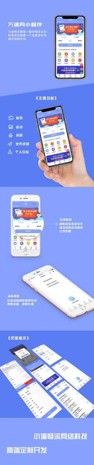 万途网是一款微信小程序,主要是为物流公司和发货方搭建一个信息及时沟通交流的平台。主要功能为首页,资讯,语音,发布货源,个人中心。