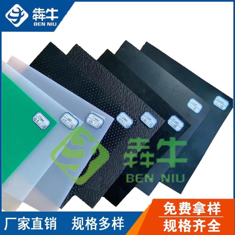 HDPE土工膜(又称防渗膜),厚度为0.2-3m,厚度0.8mm以上又称防水板。是种以的聚乙烯原生树脂为基本原料的防水阻隔型材料。主要成分为97.5%的高密度聚乙烯,约2.5%的炭黑、抗老化剂、紫外线吸收剂、稳定剂等辅料。防渗、隔离性能强。