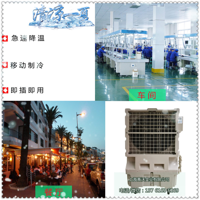 我公司是一家提供通风降温设备的私营企业,相关的产品有移动冷风机、水帘冷风机、井水冷风机、湿帘冷风机、环保空调、工业冷风机、环保空调冷风机、蒸发式冷风机、工业水冷空调、工业厂房降温、湿帘空调、移动水冷空调、水蒸发空调机,我公司所经营的降温产品具有体积小,重量轻,风力强劲、移动方便、降温迅速、节能环保、净化空气、高效保湿、通风除味,降温范围广的优势,是夏季工业降温,商业降温的不二选择。