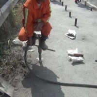 5、配料:聚合物水泥注浆料的质量配比为:聚合物水泥注浆料∶水=10∶ (2.5-2.8)。采用强制式搅拌机或改装的冲击电钻进行搅拌,搅拌均匀后使用。拌制好的浆料应色泽均匀,无粉团、沉淀、花白料、泌水等,且流动性符合注浆稠度要求。