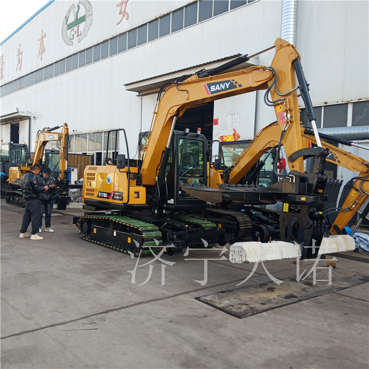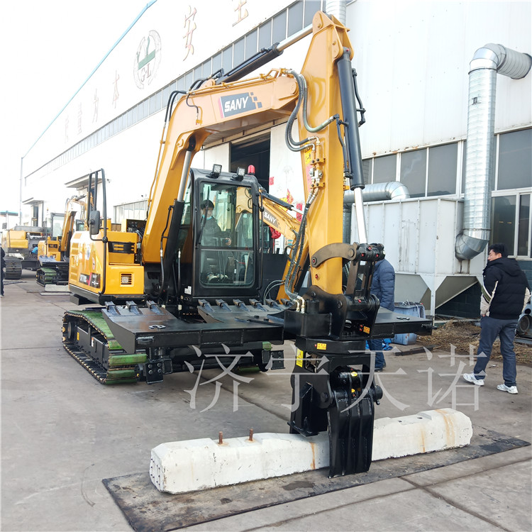 挖掘机枕木夹具是我厂新的铁路维护属具工作装置之一,它是可以通过快换连接器安装到挖掘机上的前端工作装置。分为横置式、伸缩式(5抓、7抓等)。适用于5-16挖掘机使用。