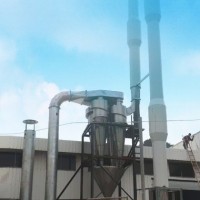在干燥过程中,新鲜洁净的空气,通过热交换器加热后,与从扬料轮机输送来的物料颗粒混合(也可采用特制的密封螺旋输送机输送颗粒物料),并利用热空气做介质,把热能传给物料颗粒,使附着在物料颗粒表面上和一部分含在物料颗粒内部的水分,变成蒸汽而混入干燥管中的气流当中。利用旋风分离器(沙克龙)、关风器,将物料与空气、水蒸汽分离,从而减少了物料中水分。干燥后的物料经出料口进入下道工序;尾气通过引风机主管,经尾气排放管排出。