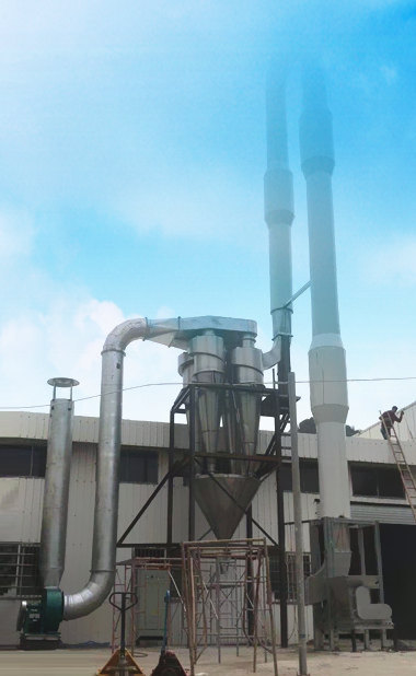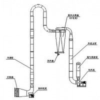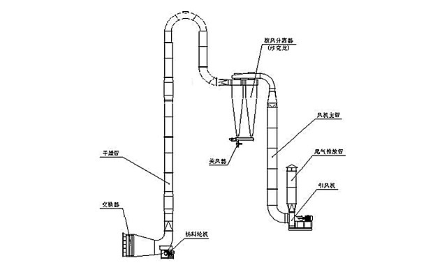 气流干燥机由热交换器、扬料轮机、干燥管、旋风分离器(沙克龙)、关风器、引风机、风机主管、尾气排放管等组成。