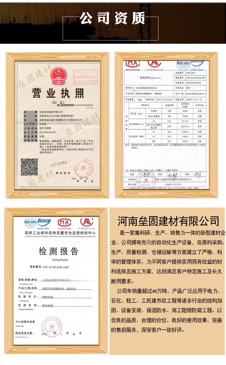 以上所展示的垒固无收缩微膨胀水泥灌浆料设备加固灌浆修补水泥浆料页面信息由河南垒固建材有限公司 自行提供,垒固无收缩微膨胀水泥灌浆料设备加固灌浆修补水泥浆料信息内容的真实性、准确性和合法性由发布企业河南垒固建材有限公司 负责,黔优网不承担任何责任。黔优网为信息展示平台,仅提供信息展示服务,不参与任何交易行为,且不涉及用户间因交易而产生的法律关系及法律纠纷,纠纷由您自行协商解决。如您发现河南垒固建材有限公司 企业店铺内有任何违法/侵权信息,请立即点此【投诉举报】并提供有效线索。也可以通过邮件(邮箱号:kefu@qianu.com)联系我们及时修正或删除。